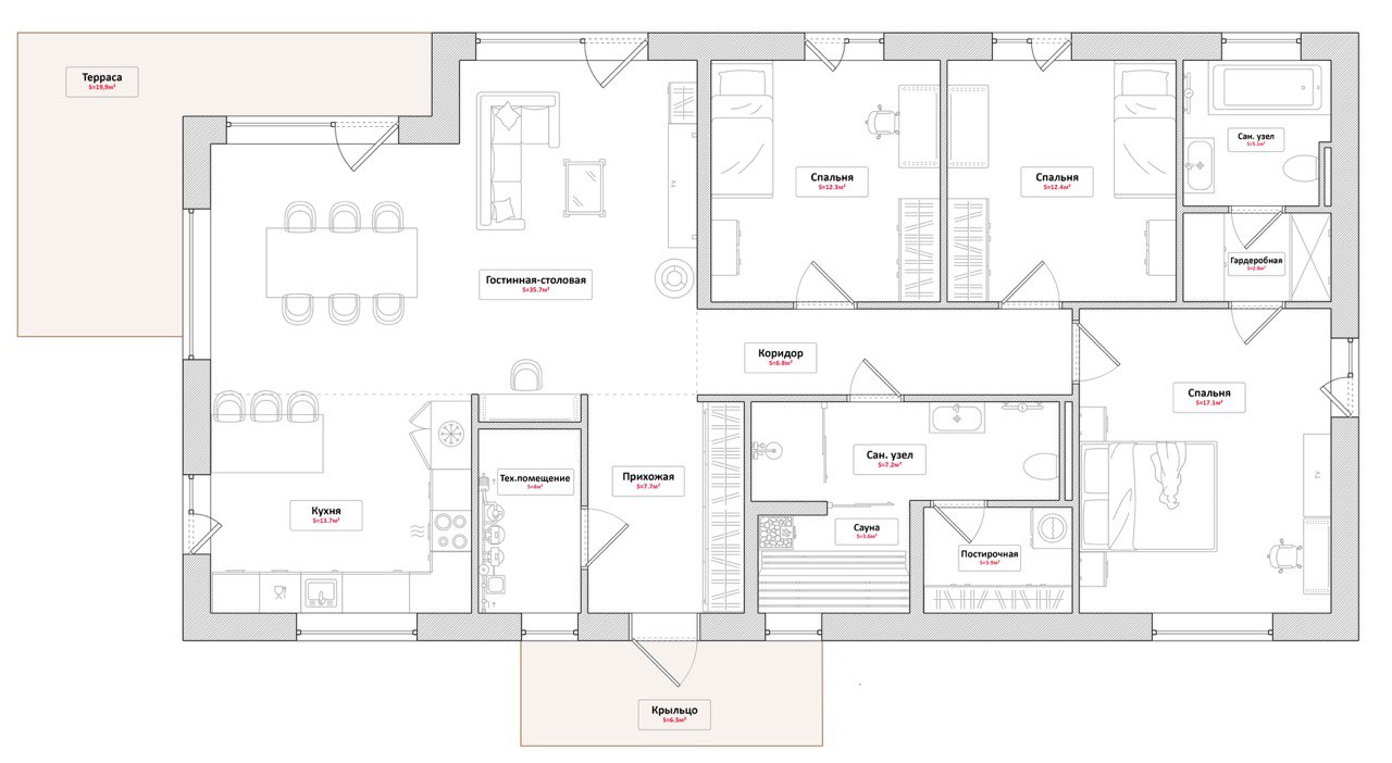В стоимость включены: земельный участок, качественный забор, дом с привлекательным фасадом и уже подведёнными коммуникациями. Внутри выполнены выводы коммуникаций и перегородки, что позволяет вам легко завершить отделку по своему вкусу.