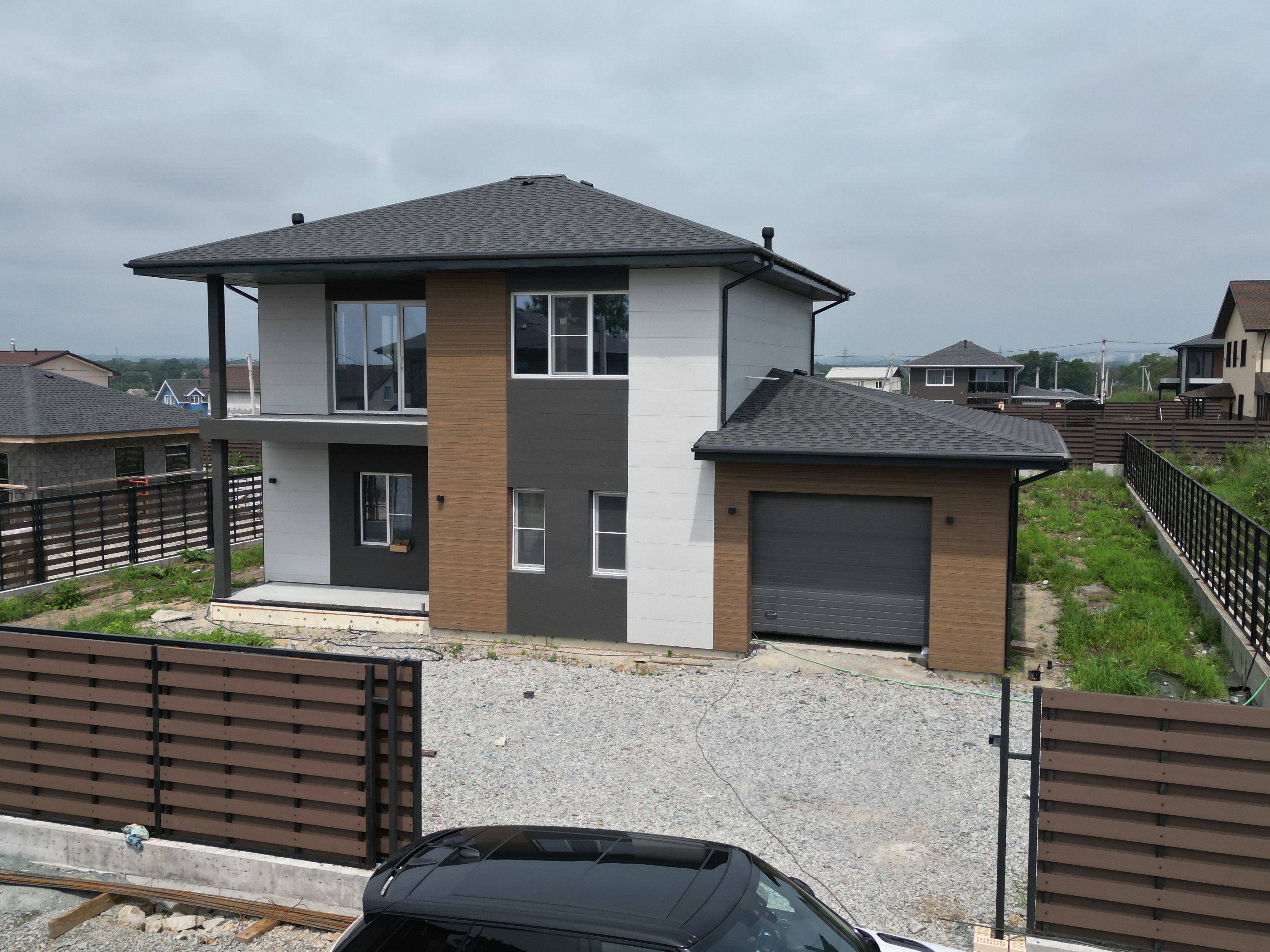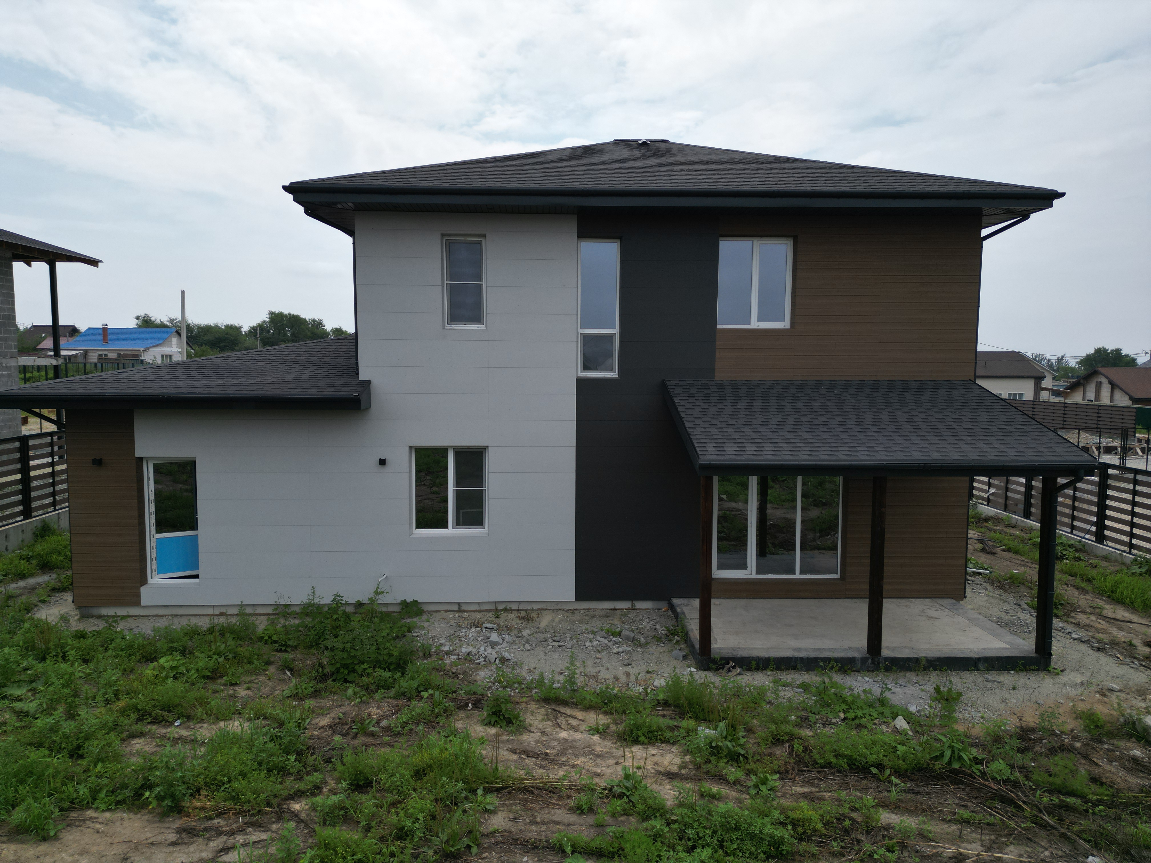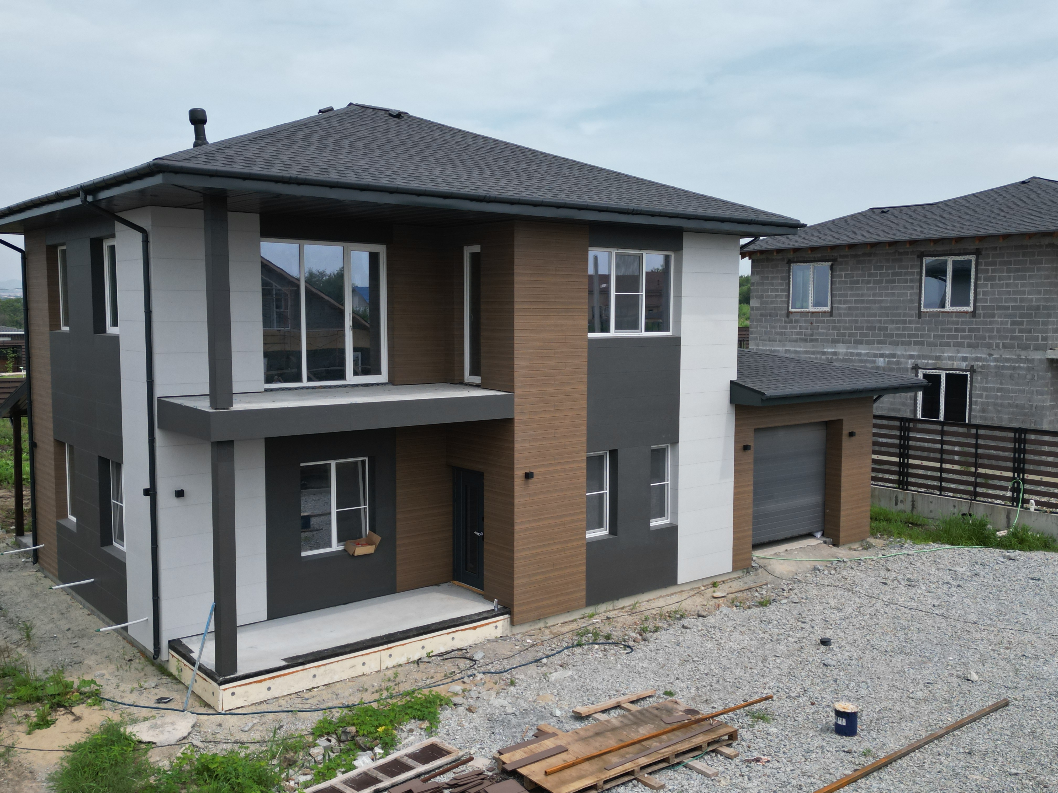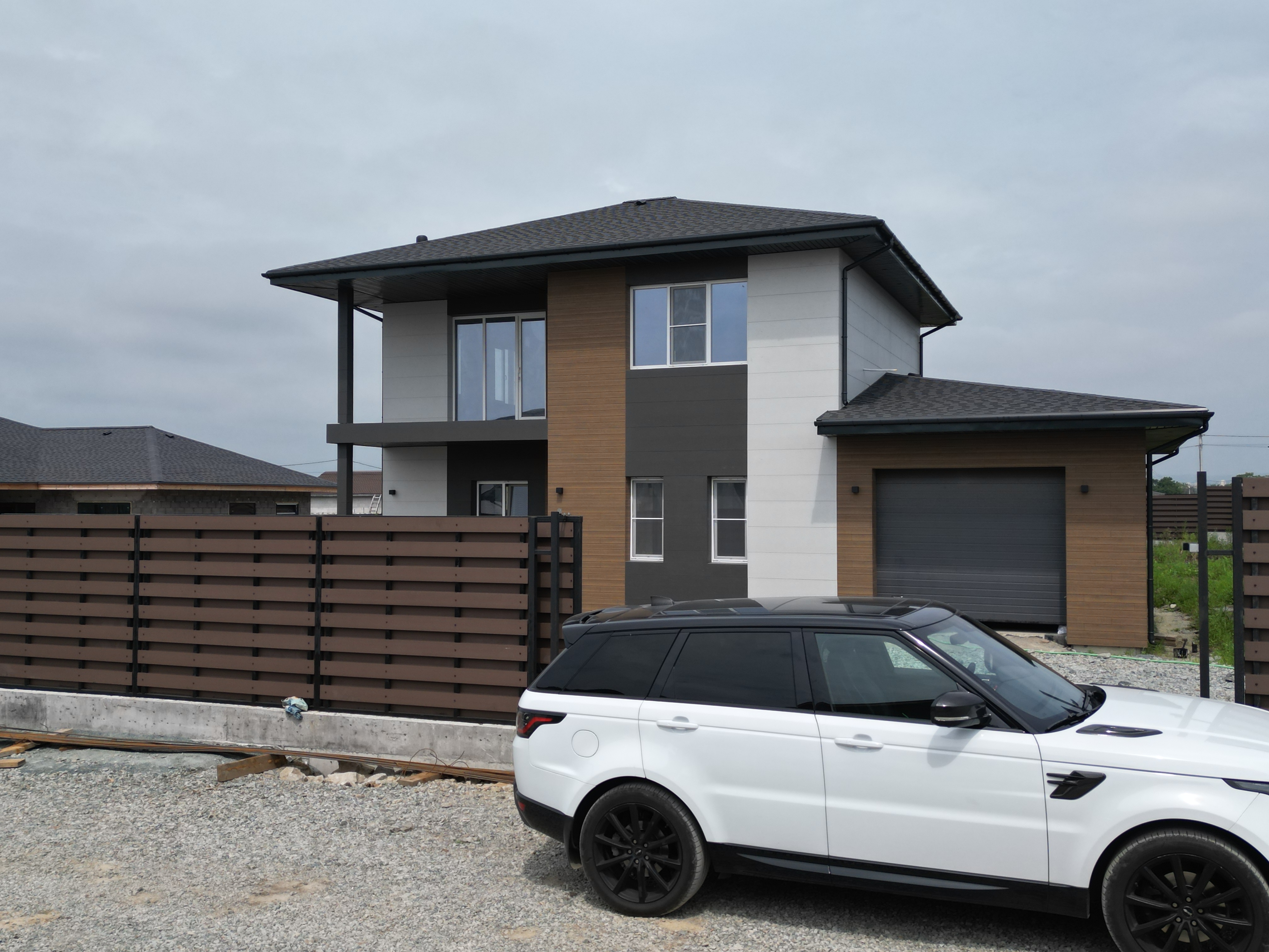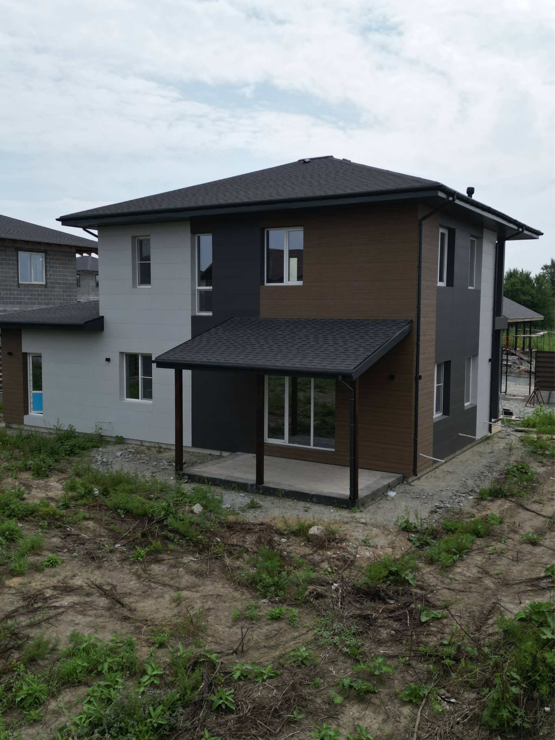 В стоимость входит полностью готовый дом с прекрасным фасадом по визуализации, земельный участок ИЖС в собственности, асфальтированный подъезд, а также благоустроенная территория посёлка с несколькими въездами и охраной. Вам доступны чистый сквер и детская площадка для семейного отдыха.