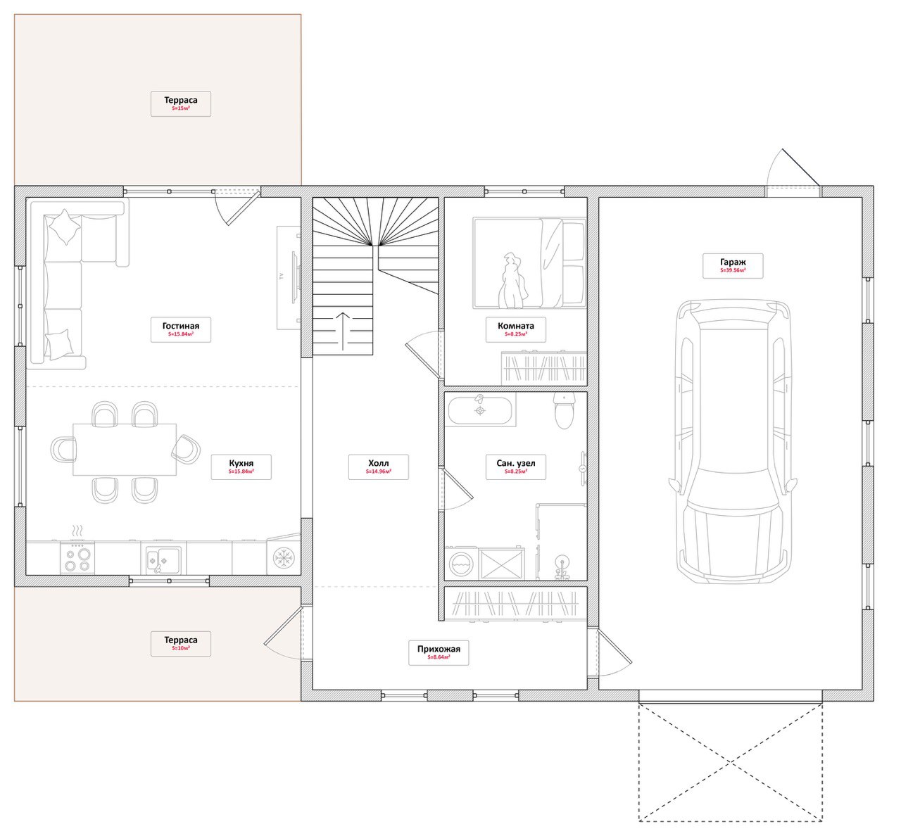 - Просторная кухня-гостиная с выходом на террасу для незабываемых встреч