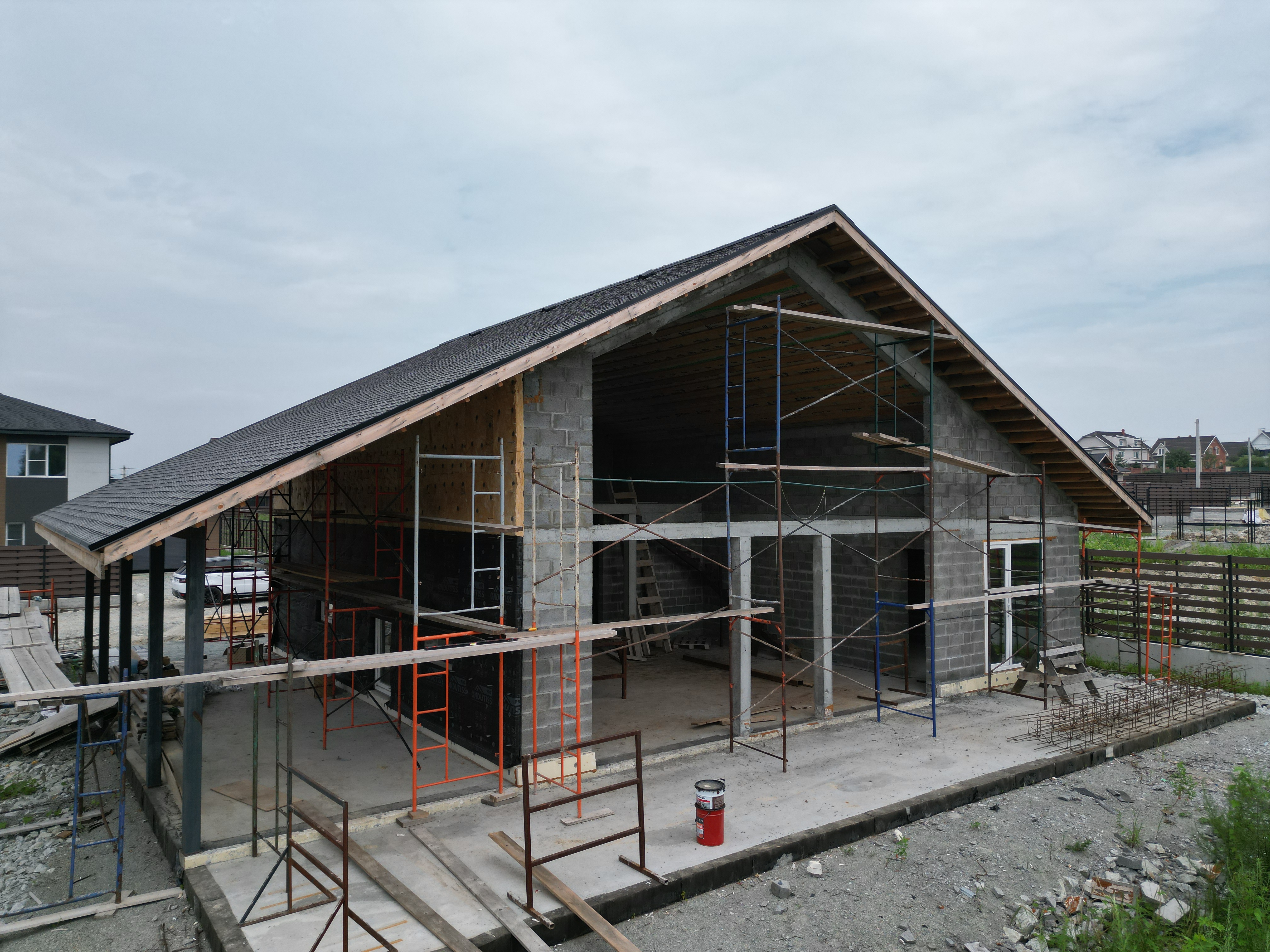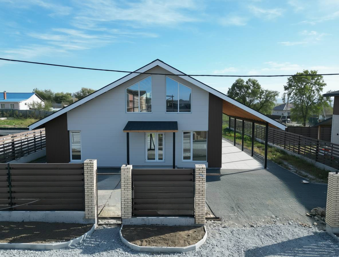 - Построенный дом с фасадом
